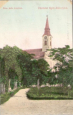 Képes levelezőlap - Üdvözlet Uzonból - Ref. templom, Ref. ''Tatranyi'' elemi iskola - Lang Henrik fényképészeti műterme, Brassó - Kiadja a fogyasztási szövetkezet - 1900-as évek eleje